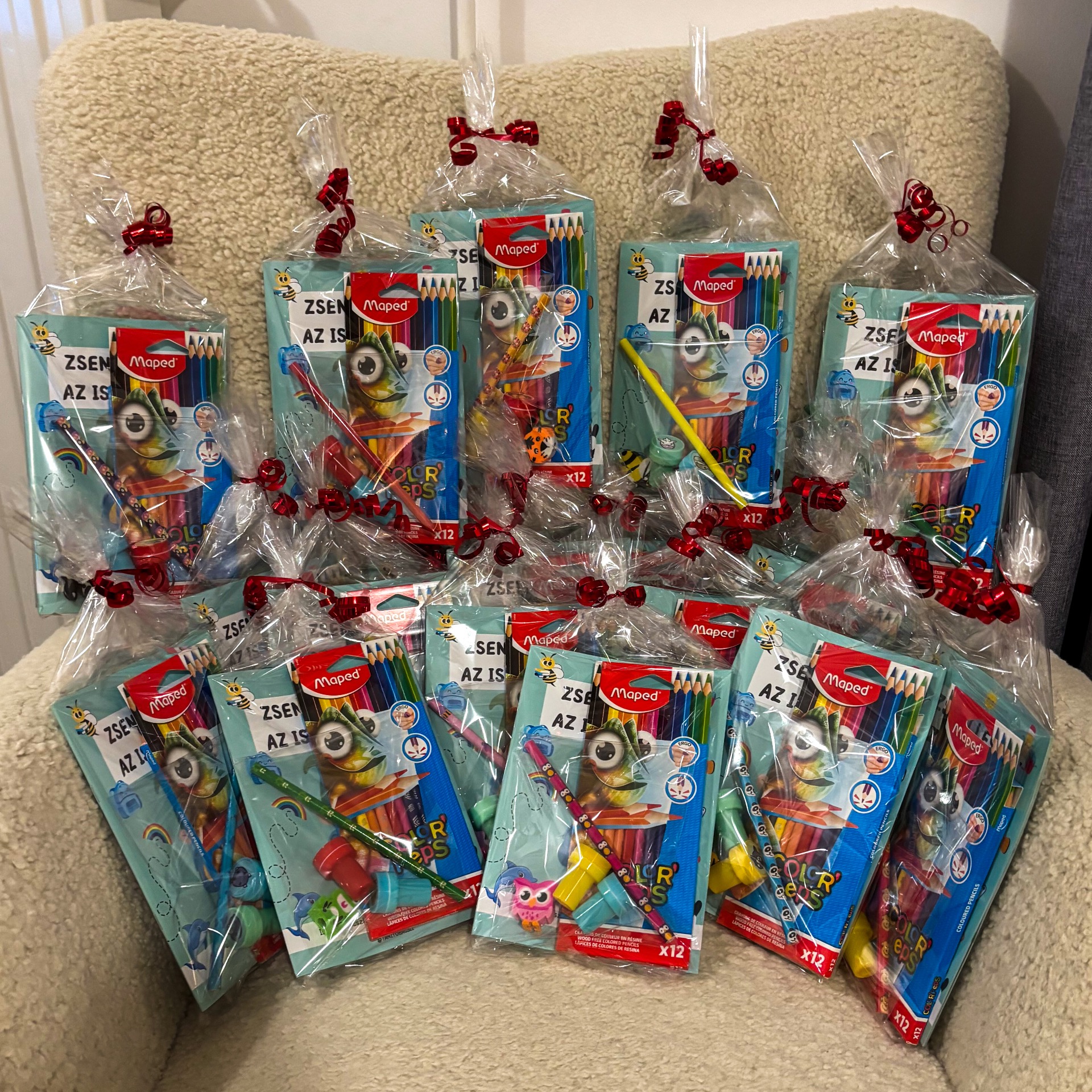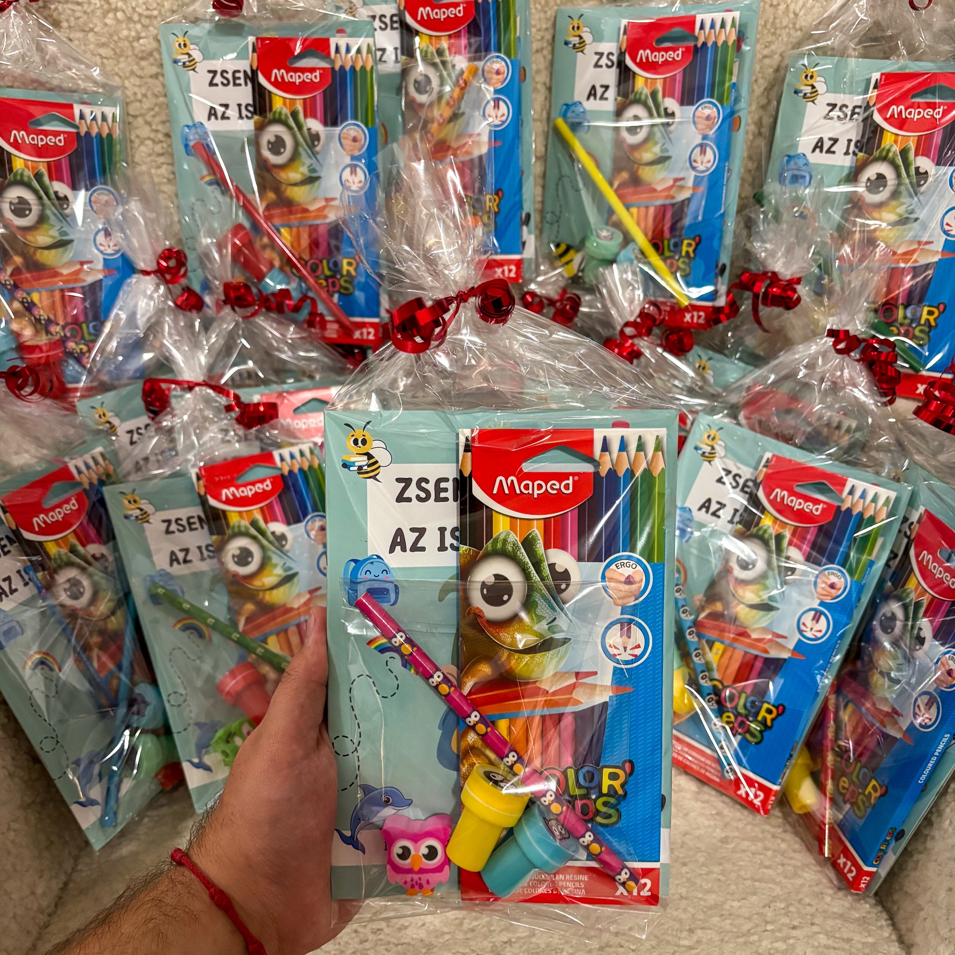 Limitált, összesen 18 darabos ajándékcsomag óvodásoknak és iskolakezdőknek, Mikulásra vagy Karácsonyra. A csomag tartalmazza a "Zseni leszek az iskolában!" 32 oldalas fejlesztő füzetet és egy 12 darabos Maped színesceruza készletet, amely minden csomagban azonos. Emellett 1 db állatos radíros ceruza és 2 db mini állatos nyomda is található benne, ezek mintája és színe csomagonként eltérő, véletlenszerűen kerül bele, nem választható. A termék ajándékozásra kész csomagolásban érkezik. Az ár 4.390 Ft, a készlet erejéig elérhető, utánrendelés nem várható.